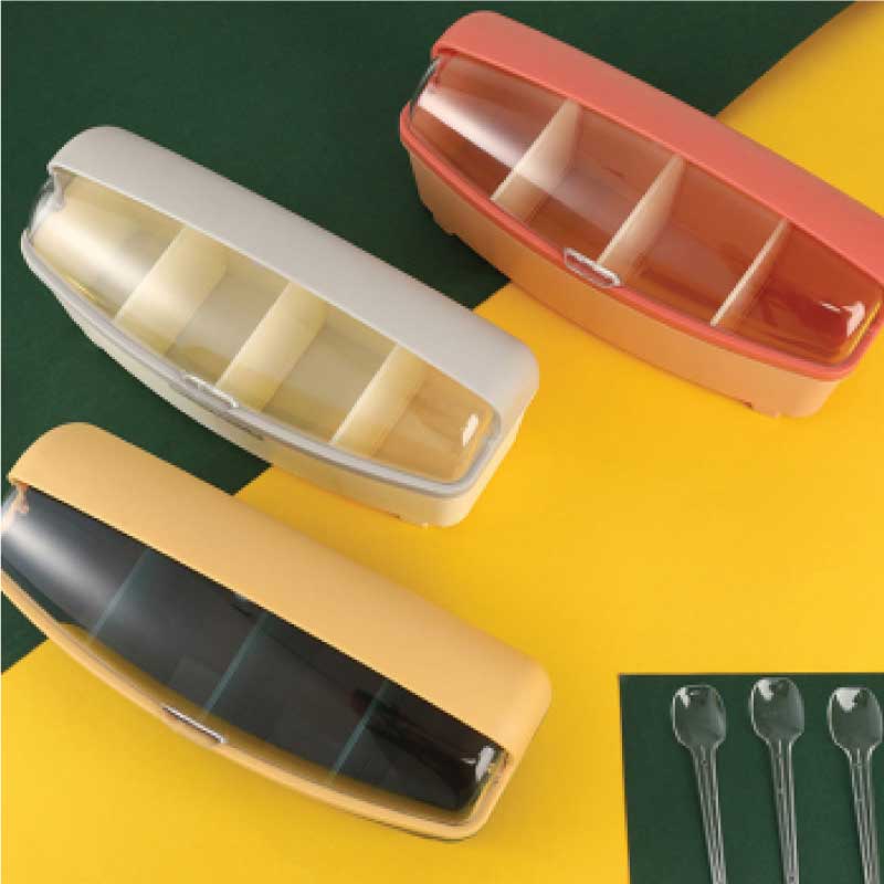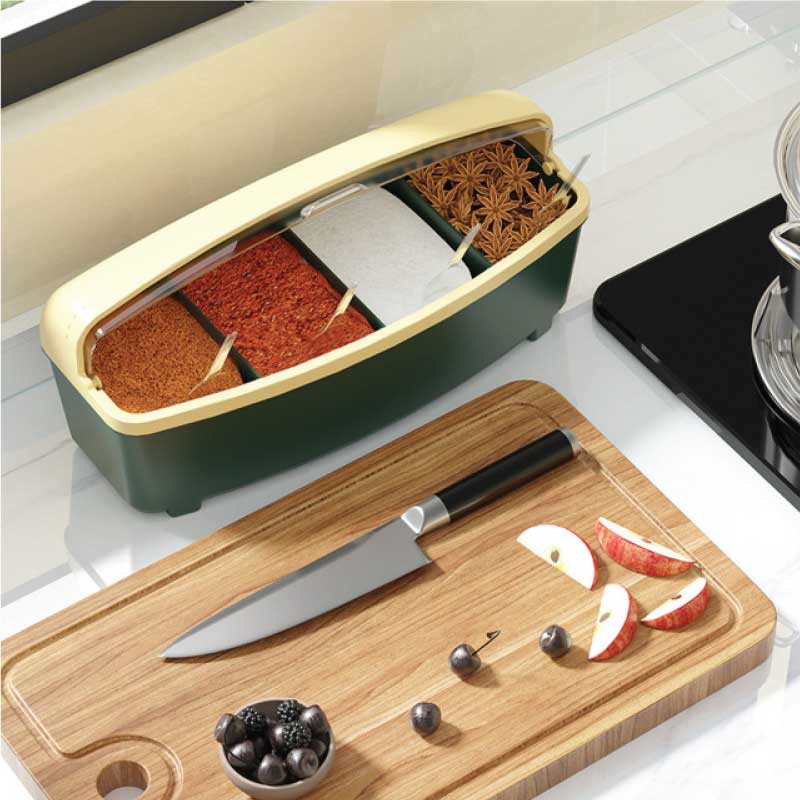 Nordic Style 4 Grid Oval Kitchen Spice Box Set Seasoning Pots Seasoning Sugar Salt Container