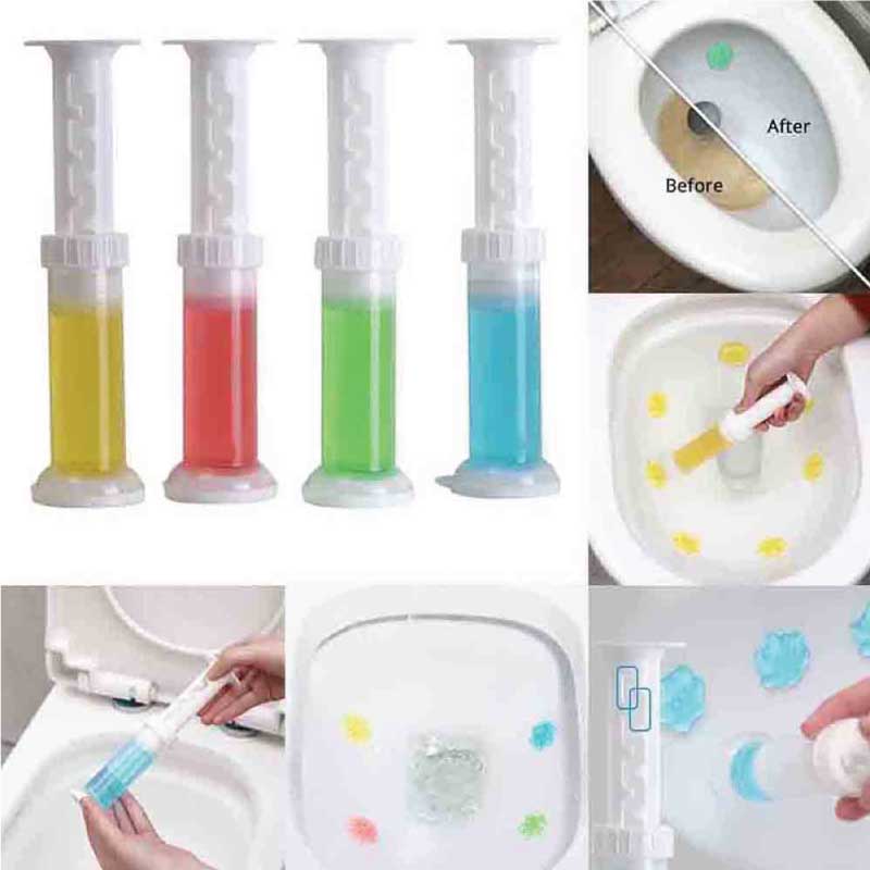 3 place the gel sleeve near the toilet wall (the toilet wall needs to be cleaned first), press the protrusion on the handle, push forward, the toilet gel will stick to the wall of the toilet.